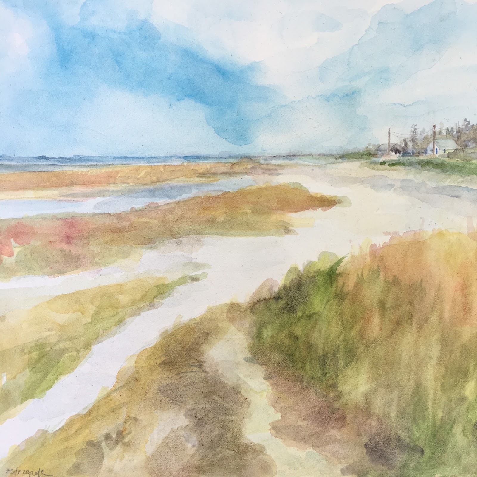 I primarily work in watercolor, it suits my personality and artistic style. Importantly, watercolor lends itself to the stop-and-start work-style I need as a busy mother of three young boys. My color palette includes American-made, natural mineral pigment watercolor paints which leave natural mineral shimmer and granulation complimenting my work. Residents of Harwich, my boys, husband, and I love our Cape Cod community. I am always making note of my next painting from our surroundings.